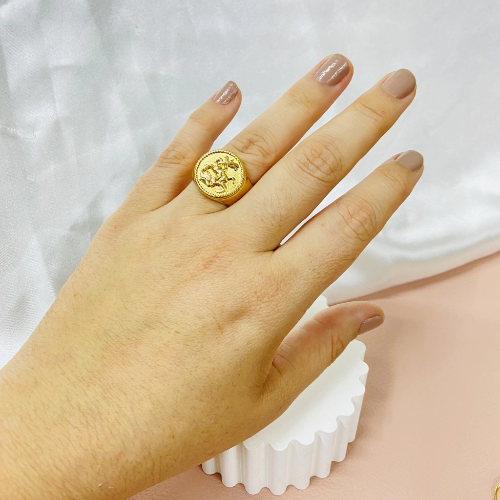 Anel São Jorge em Detalhes: Celebre a bravura e proteção com nosso anel dedicado a São Jorge, repleto de detalhes que capturam a essência deste santo guerreiro.